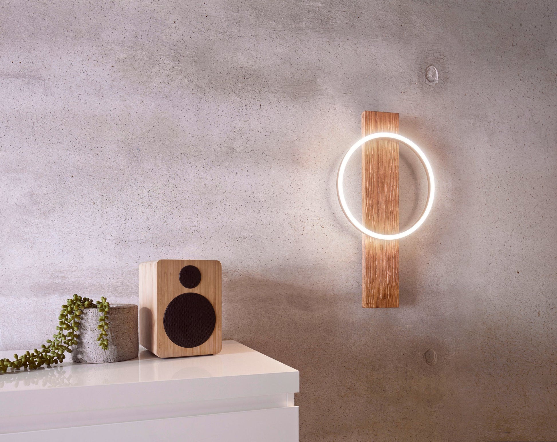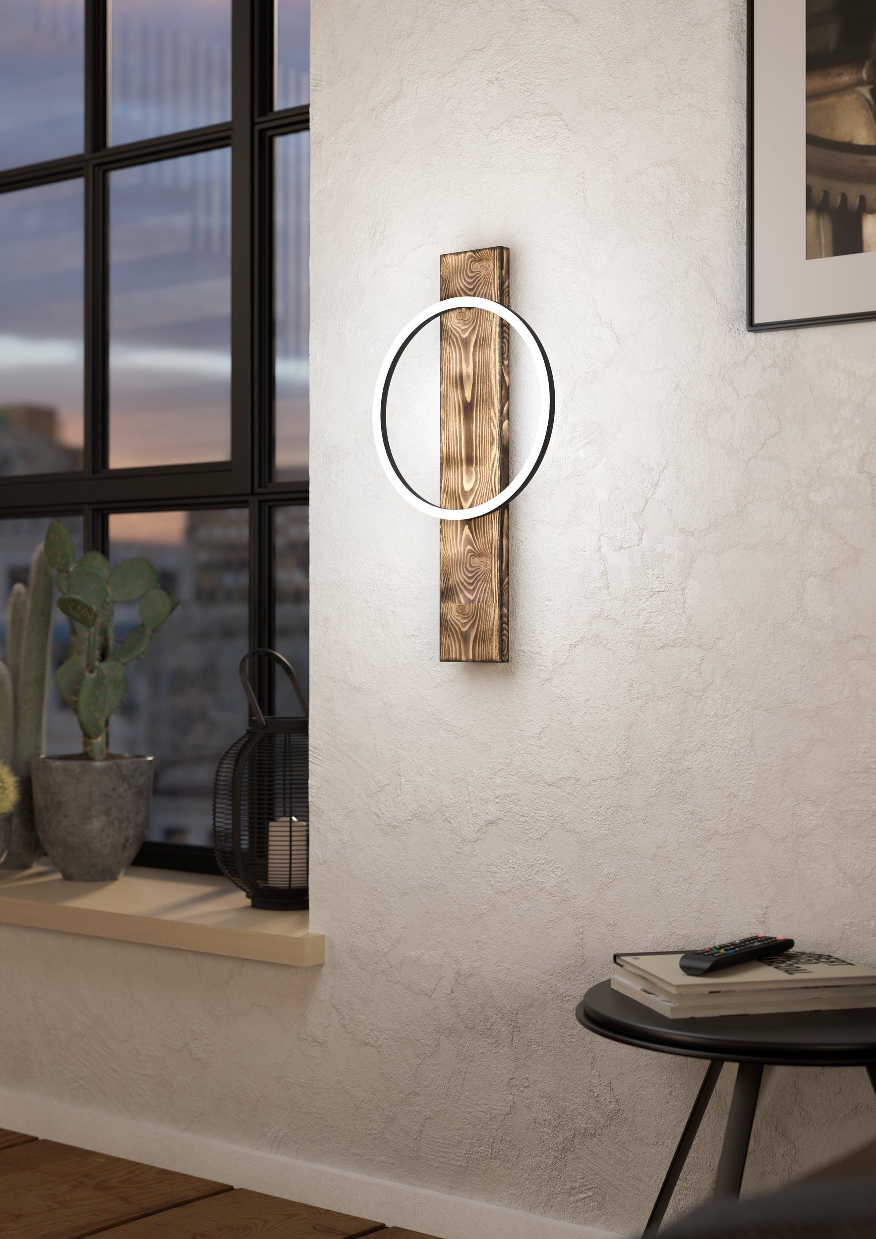 L’applique a LED BOYAL combina un design unico e minimalista con un intrigante mix di materiali, tra cui il legno fiammato e un profilo rotondo nero in metallo. I LED integrati, posti all’interno del profilo, emanano una luce bianca piacevolmente calda e sono coperti da un plafone in plastica bianca. Perfetta per ambienti moderni, questa lampada si distingue per la sua versatilità e il suo stile, rendendola un'attrazione visiva in ogni spazio: soggiorno, camera da letto, corridoio o sala da pranzo.