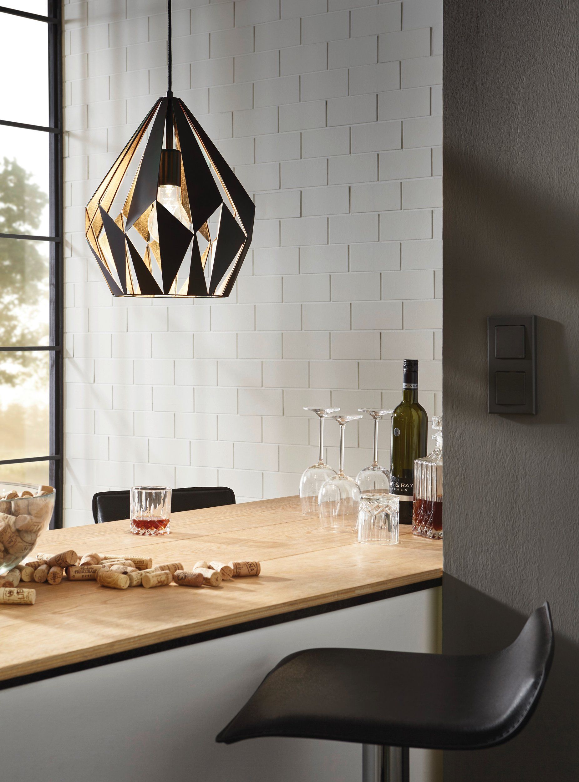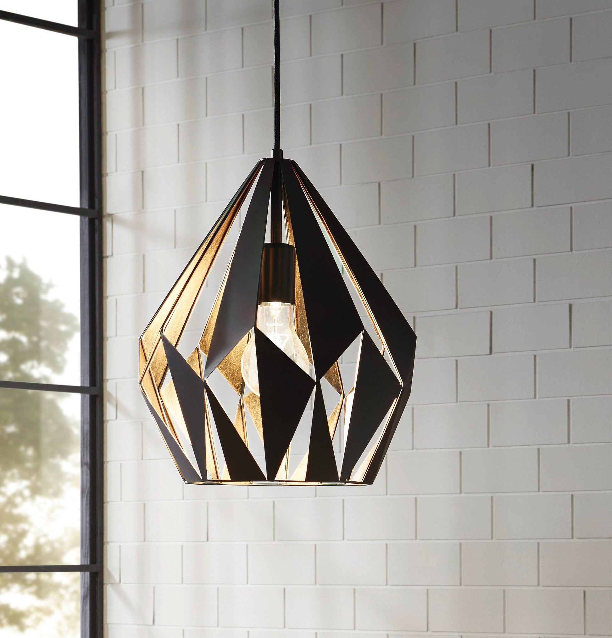 La lampada a sospensione CARLTON 1 si distingue per il suo paralume in metallo nero a forma di diamante con interno color oro. Le aperture geometriche creano affascinanti giochi di luce e ombra, aggiungendo un tocco unico all'ambiente. Perfetta per uno stile vintage moderno, si integra armoniosamente in soggiorni e sale da pranzo, risultando ideale sopra un tavolo da pranzo. Compatibile con lampadine a E27 (non incluse), offre la possibilità di personalizzare l'illuminazione per un'atmosfera accogliente e ricercata.