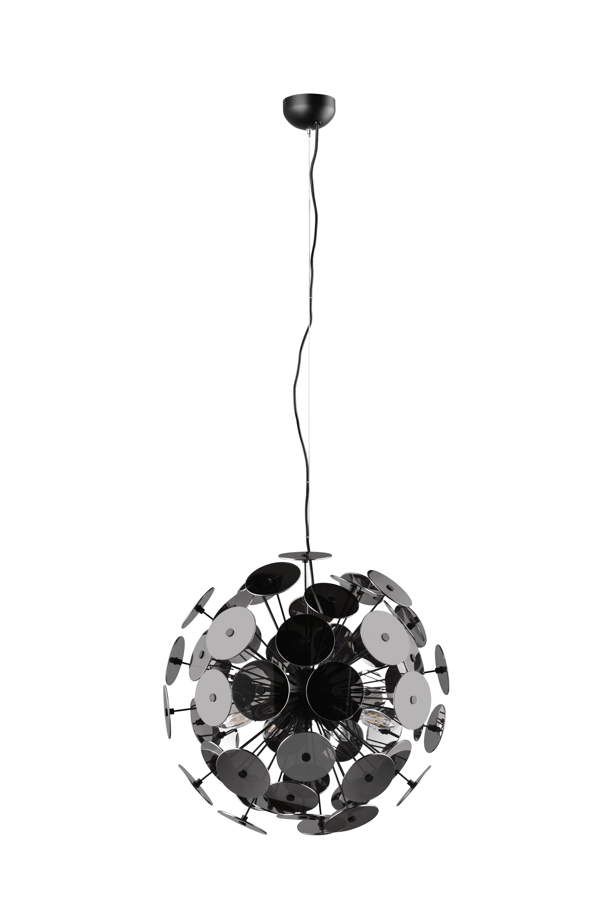 Perfetta per il soggiorno o la camera da letto, questa lampada a sospensione dal design unico diventa subito protagonista dell’ambiente. Una volta accesa, sprigiona un affascinante gioco di luci e ombre, creando un'atmosfera suggestiva che ricorda la leggerezza di un soffione di tarassaco. Il vetro cromato a specchio riflette la luce con eleganza, mentre la struttura in metallo nero opaco aggiunge un tocco di carattere con il suo contrasto raffinato. Per un’illuminazione moderna ed efficiente, si consiglia l’uso di lampadine LED, che garantiscono un risparmio energetico fino all'80%, una lunga durata e una minima emissione di calore, rispettando l’ambiente.