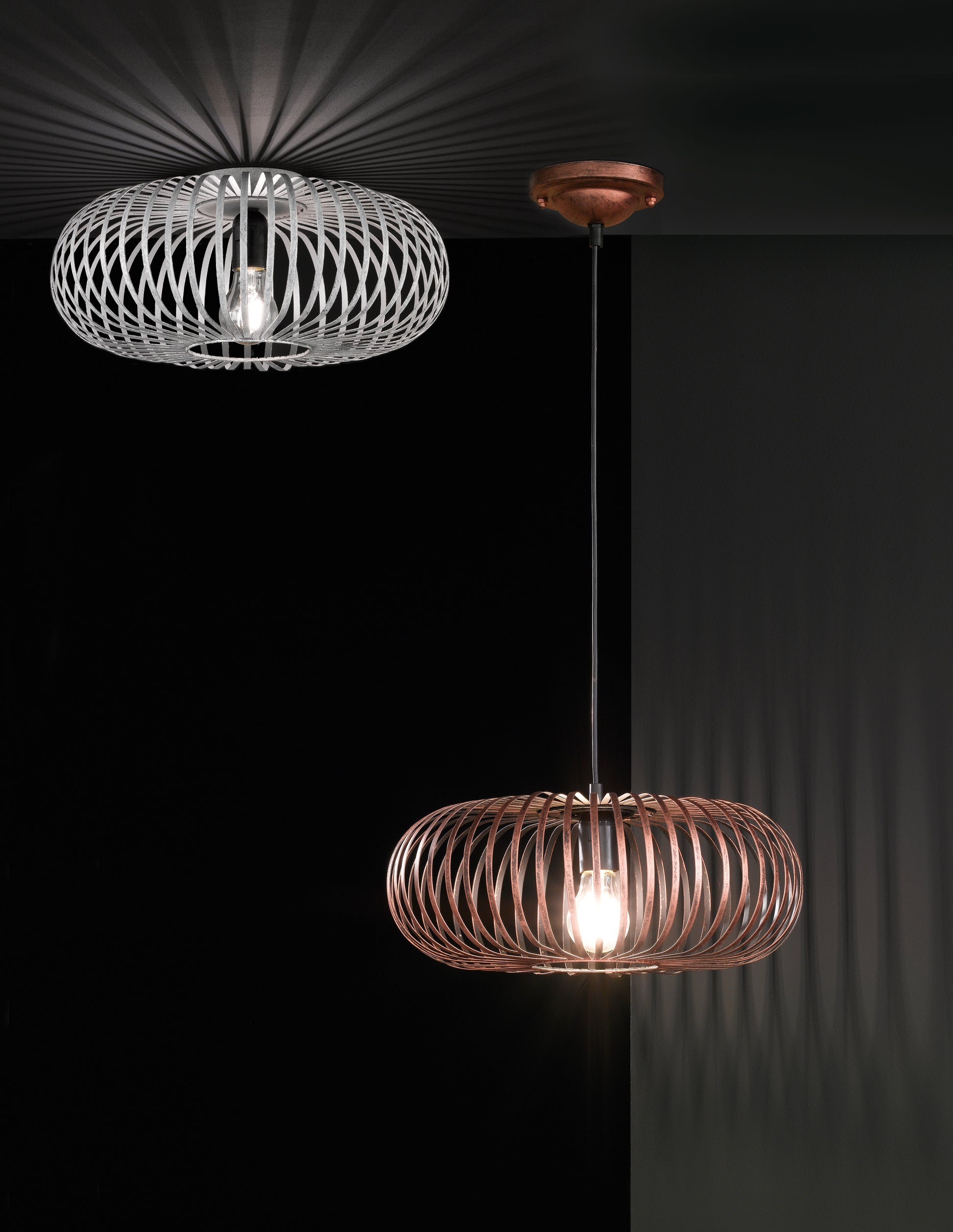 La plafoniera JOHANN è caratterizzata da eleganti archi di metallo che formano un paralume armonioso, creando un gioco di luci unico sulle pareti. Il suo design originale la rende un'attrazione decorativa da ogni angolazione, perfetta per il soggiorno, la camera da letto o l’ingresso. La sua particolare forma esalta l’effetto luminoso, offrendo un'atmosfera sofisticata. Per mantenere un aspetto coerente, si consiglia l'uso di una lampadina a filamento, in grado di valorizzare la struttura. Disponibile in un raffinato rame antico, può essere abbinata a un pendente coordinato per un’illuminazione ancora più scenografica. L'uso di lampadine a LED garantisce alta qualità della luce, lunga durata e fino all’80% di risparmio energetico, riducendo il calore prodotto e rispettando l’ambiente.