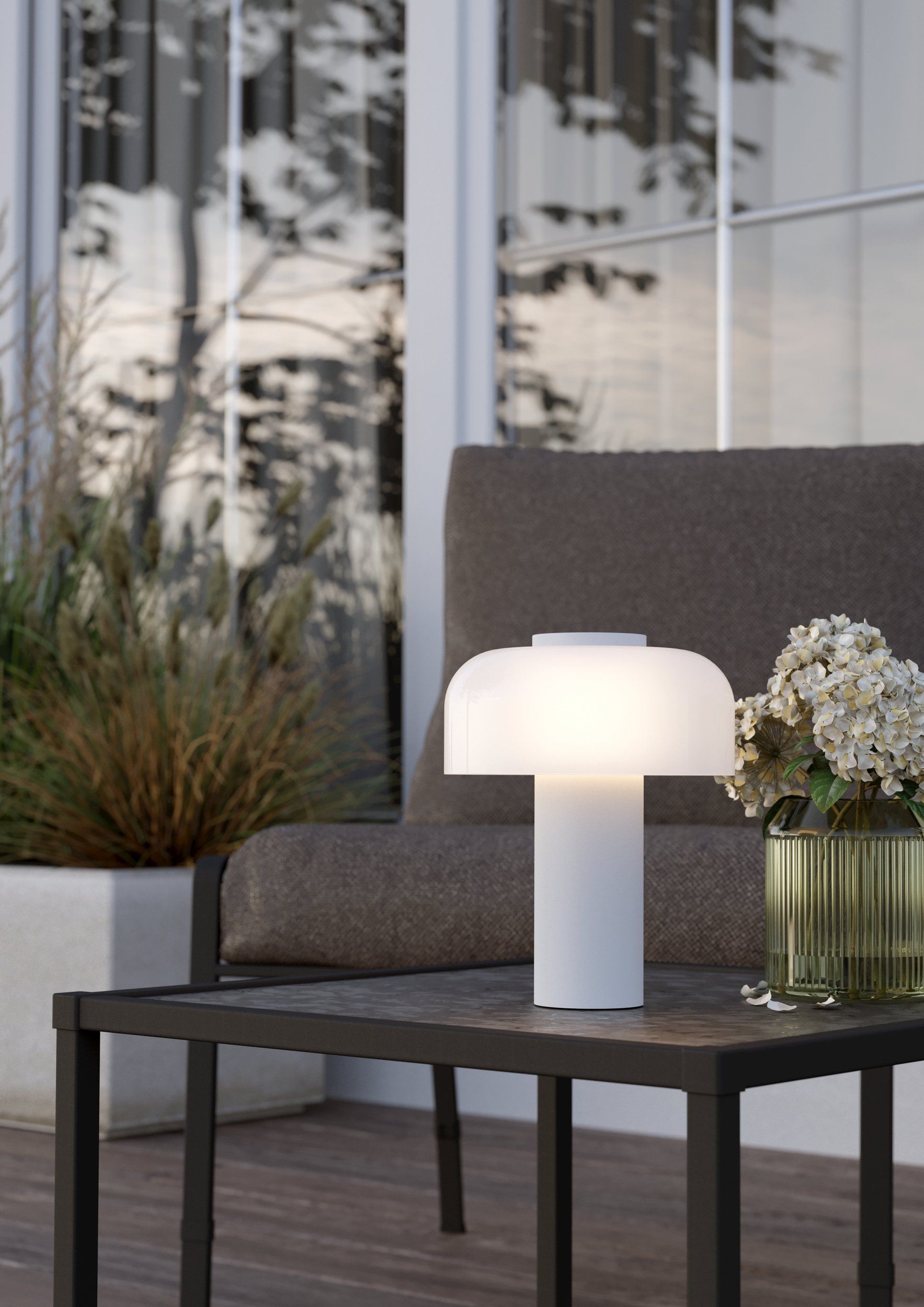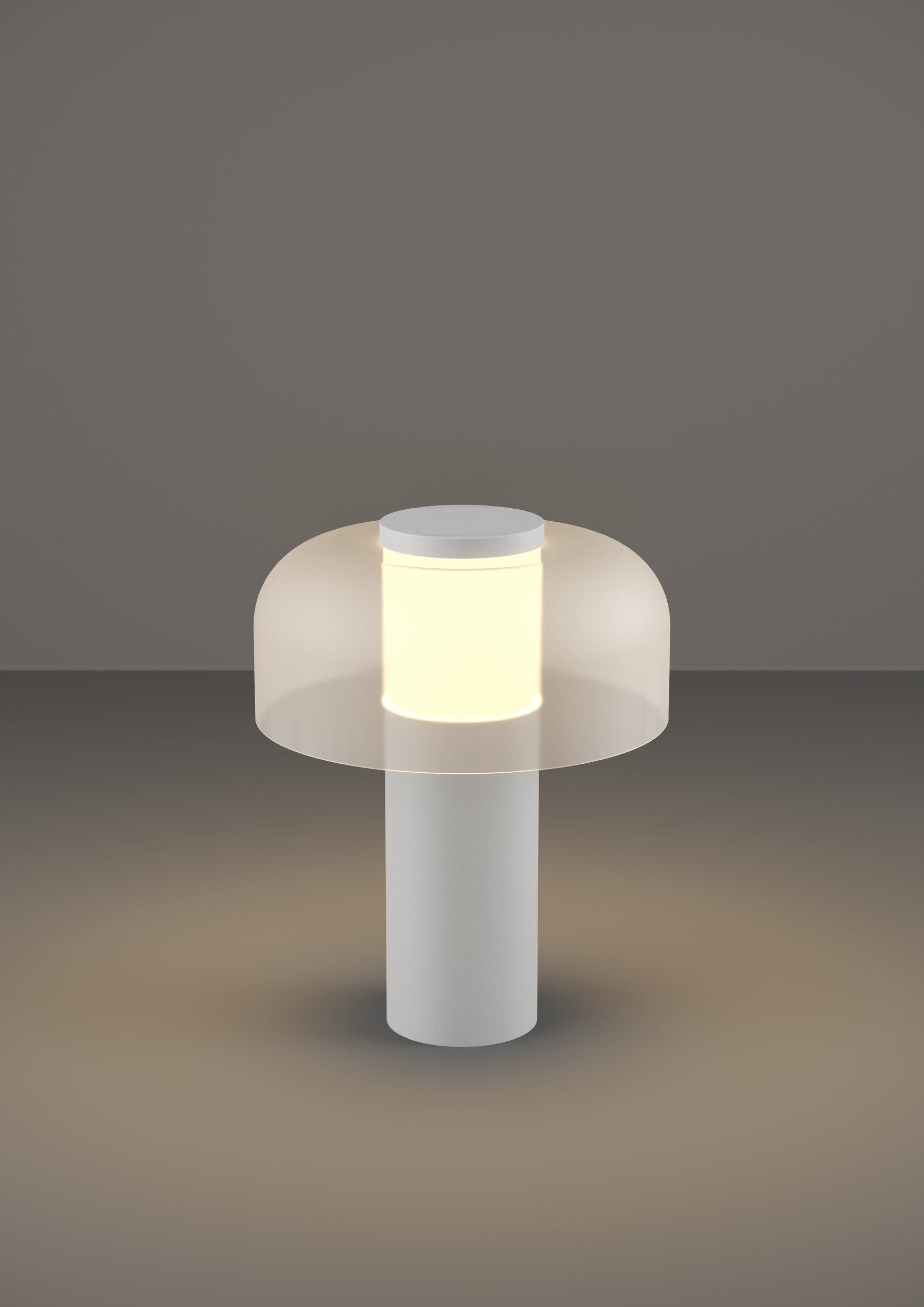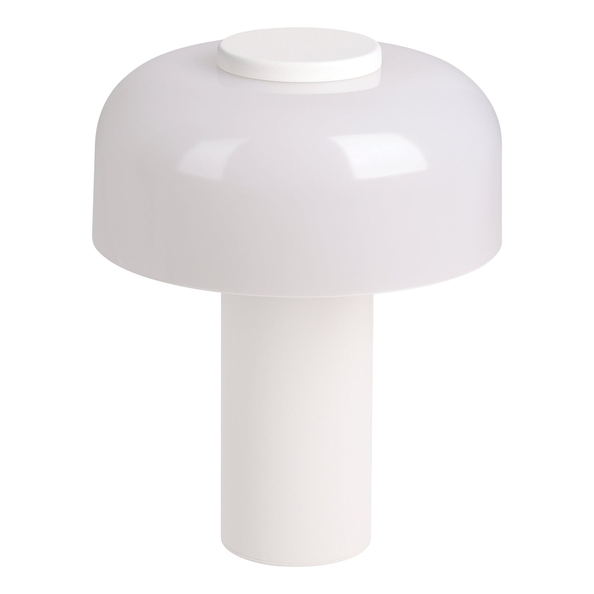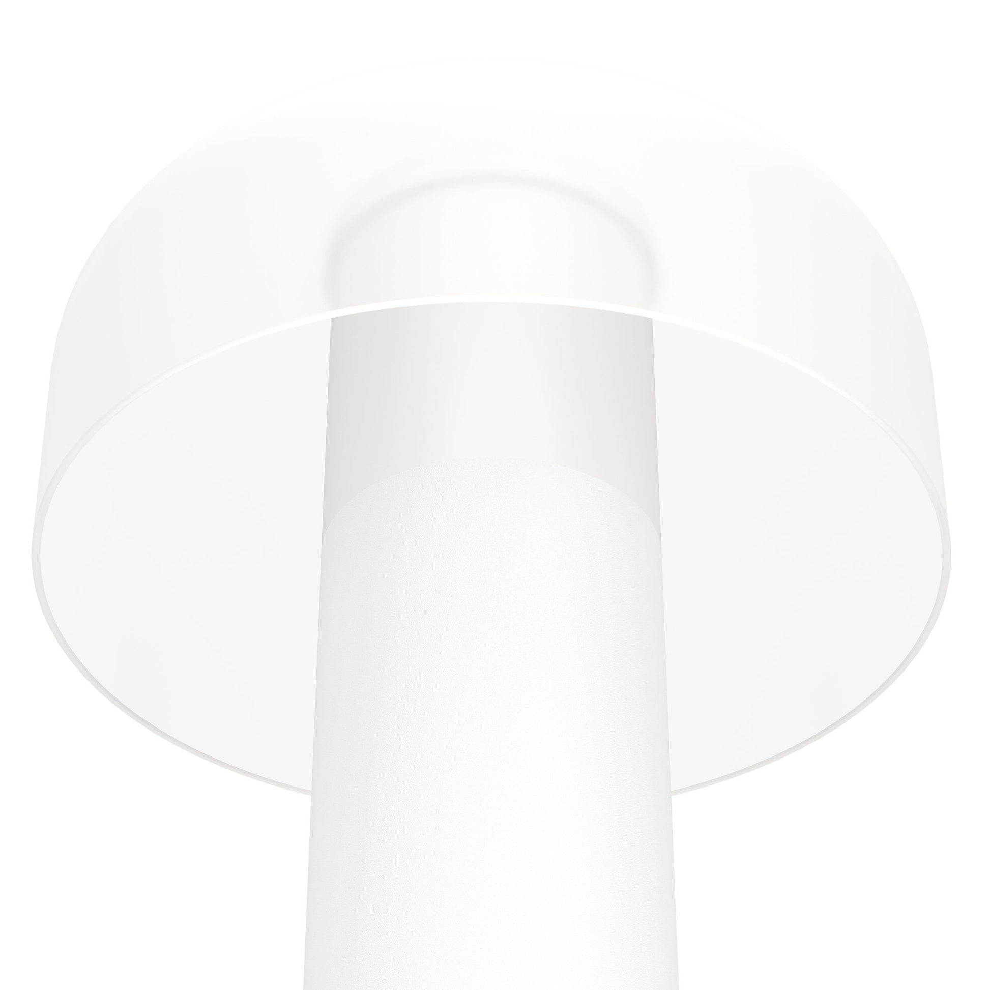 La lampada ricaricabile LED PONENTE unisce design elegante e funzionalità: è composta da una base cilindrica in acciaio bianco e da un paralume a cupola in plastica bianca.