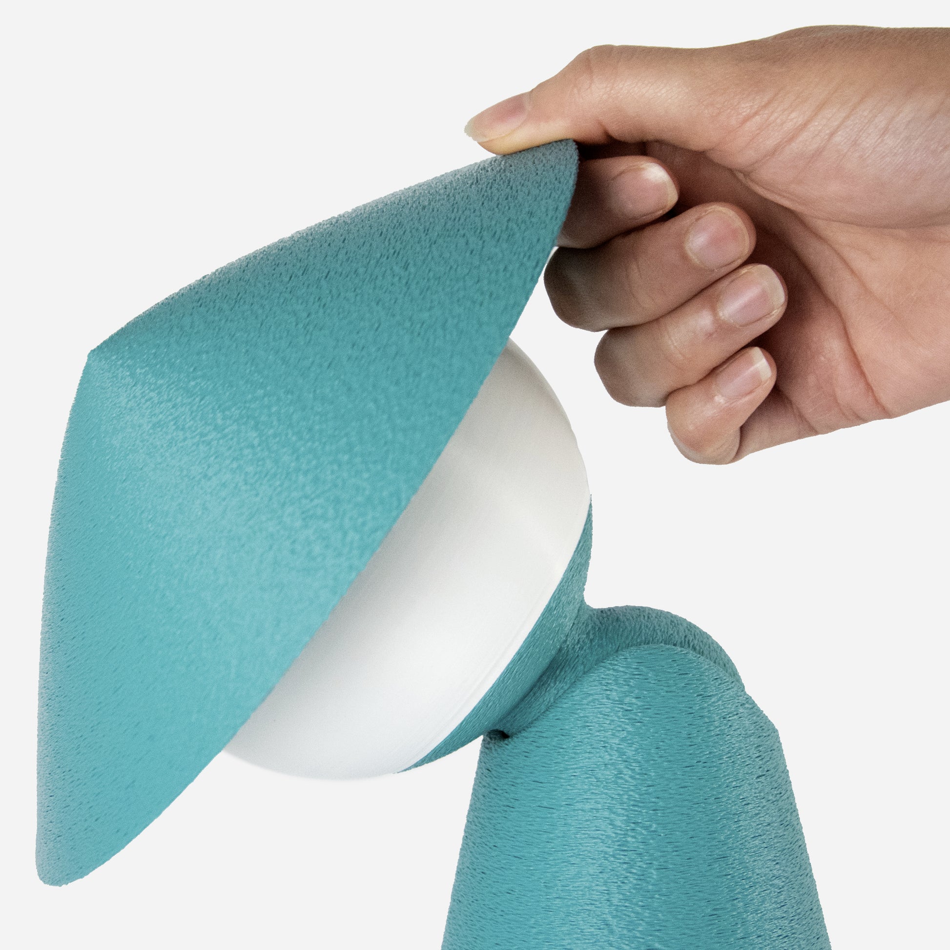 La lampada portatile PUDDY LAYER è una piccola scultura luminosa che unisce design contemporaneo e funzionalità. La finitura Layer è realizzata in stampa 3D con filamenti colorati senza ulteriori lavorazioni, questo permette di mettere in risalto ogni passaggio di stampa rendendo la lampada un pezzo unico. La forma di Puddy richiama esplicitamente il tipico cappello a cono orientale, che può essere mosso a piacimento. Il suo corpo leggero, disponibile in diversi colori, è perfetto per chi cerca un oggetto d’arredo che sia anche un simbolo di cura per l’ambiente. La batteria ricaricabile tramite USB-C garantisce fino a 8 ore di autonomia, rendendola ideale per essere spostata ovunque: dalla scrivania al comodino, fino alla tavola apparecchiata. PUDDY LAYER non è solo una fonte di luce, ma una presenza poetica che trasforma gli spazi con la sua luce morbida e avvolgente. L'intensità della luce è inoltre regolabile attraverso un Dimmer, rendendola adatta a ogni situazione.