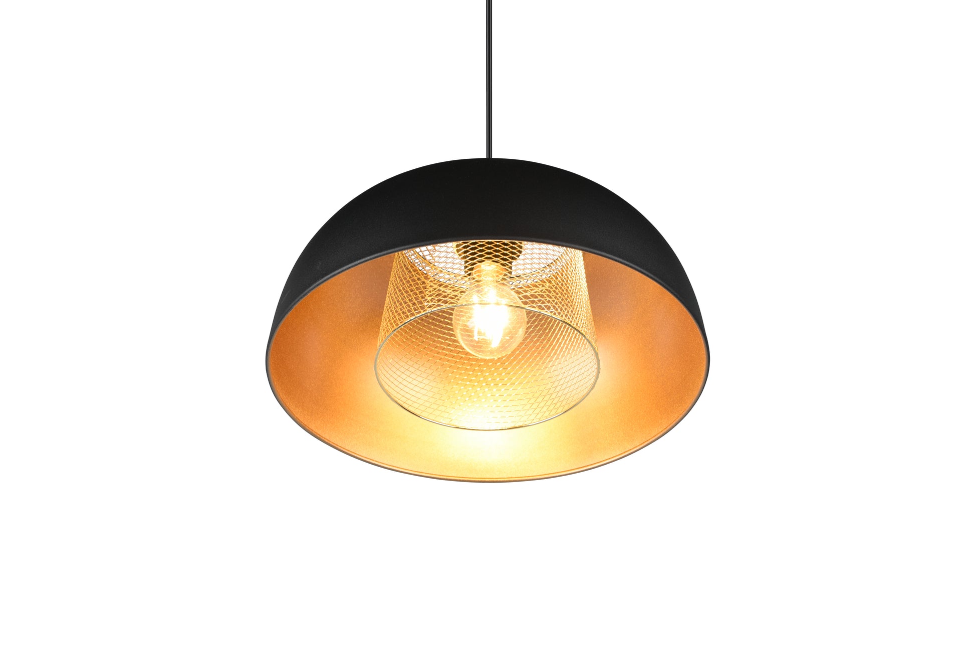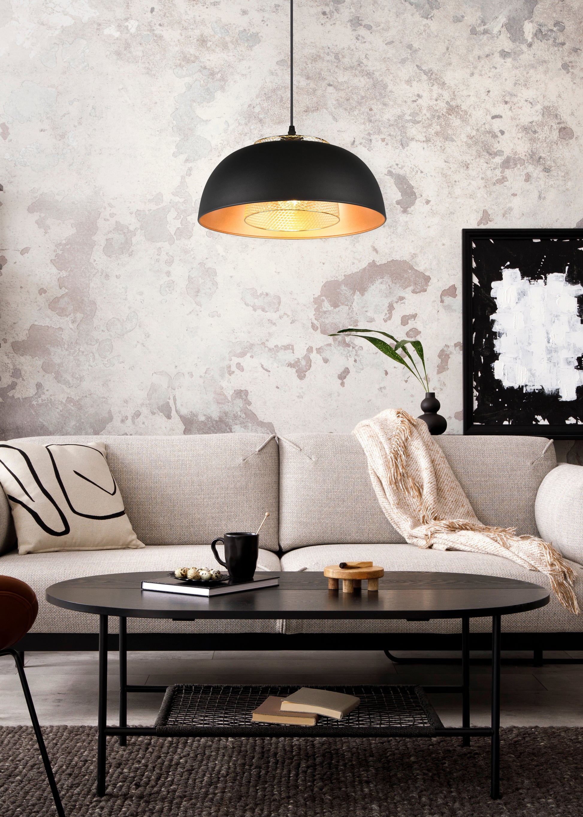 La sospensione PUNCH è l'ideale per chi ama lo stile industriale, perfetta per ambienti moderni e minimalisti come cucina e zona pranzo. Il suo ampio paralume nero opaco, impreziosito all'interno da un secondo paralume a reticolo dorato, crea suggestivi effetti di luce, aggiungendo carattere allo spazio. Il design elegante e la combinazione di colori nero e oro donano un tocco raffinato e contemporaneo. Per un’illuminazione efficiente ed ecologica, si consiglia l’uso di lampadine a LED, che offrono alta qualità della luce, lunga durata e un risparmio energetico fino all’80%, contribuendo anche alla tutela dell’ambiente.