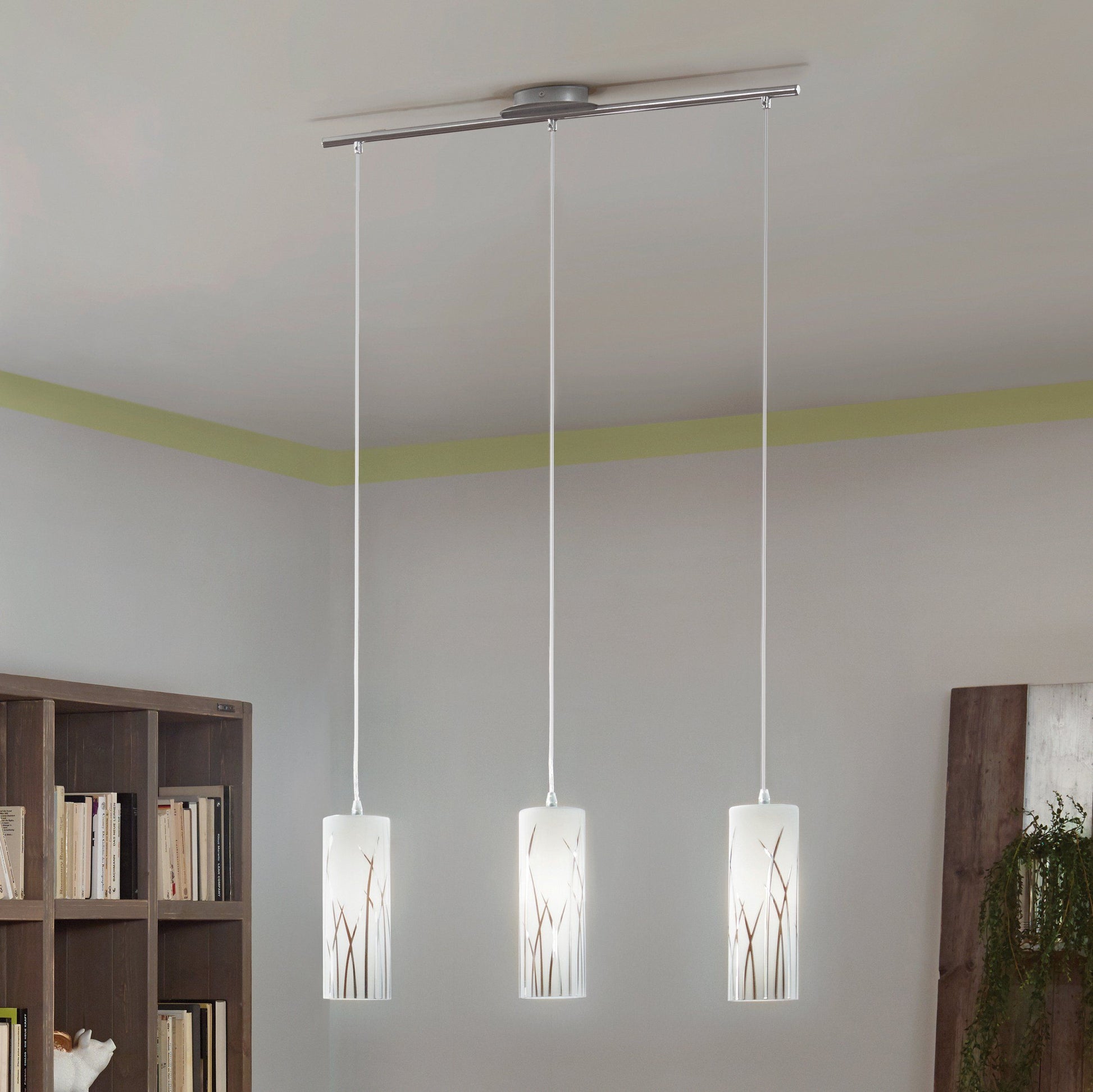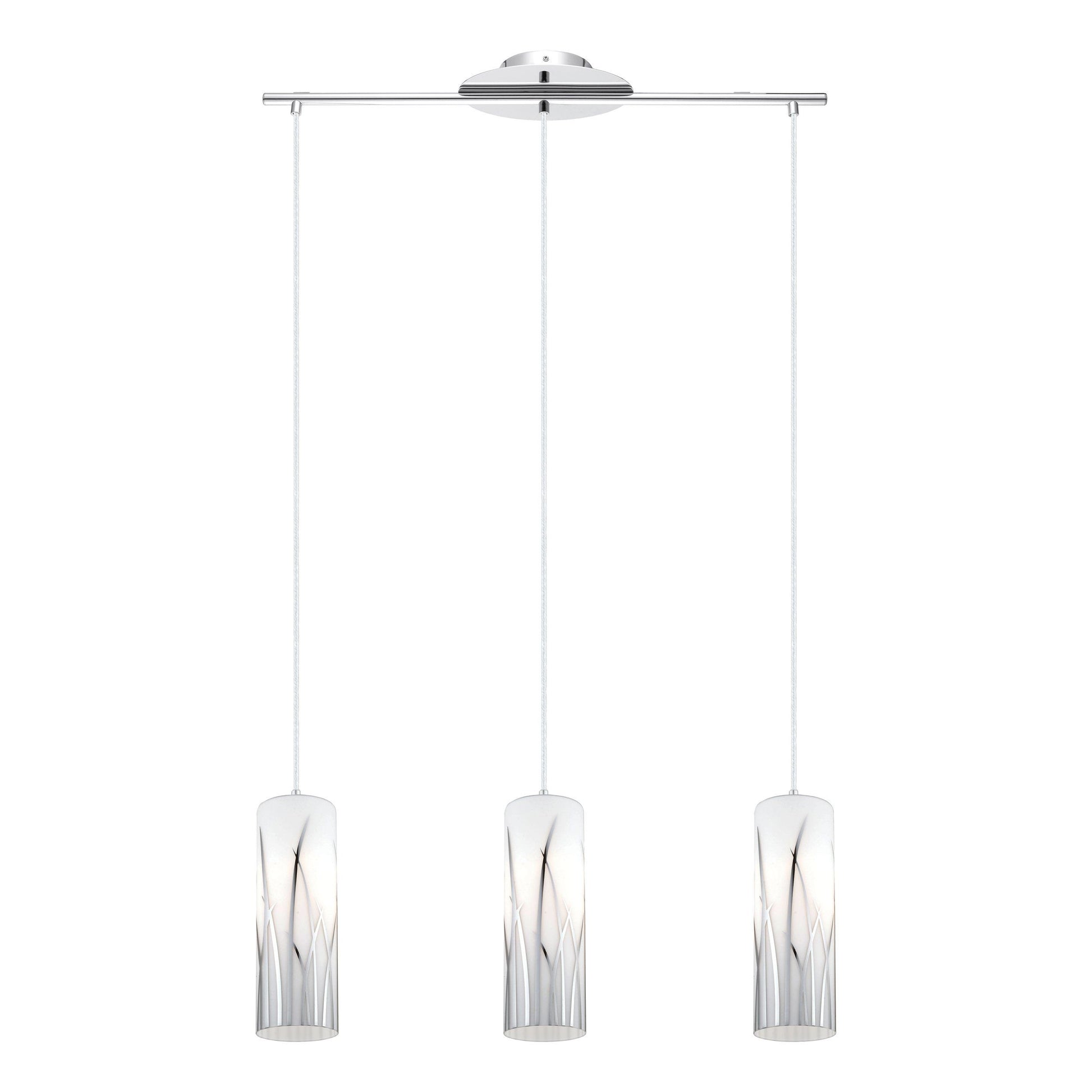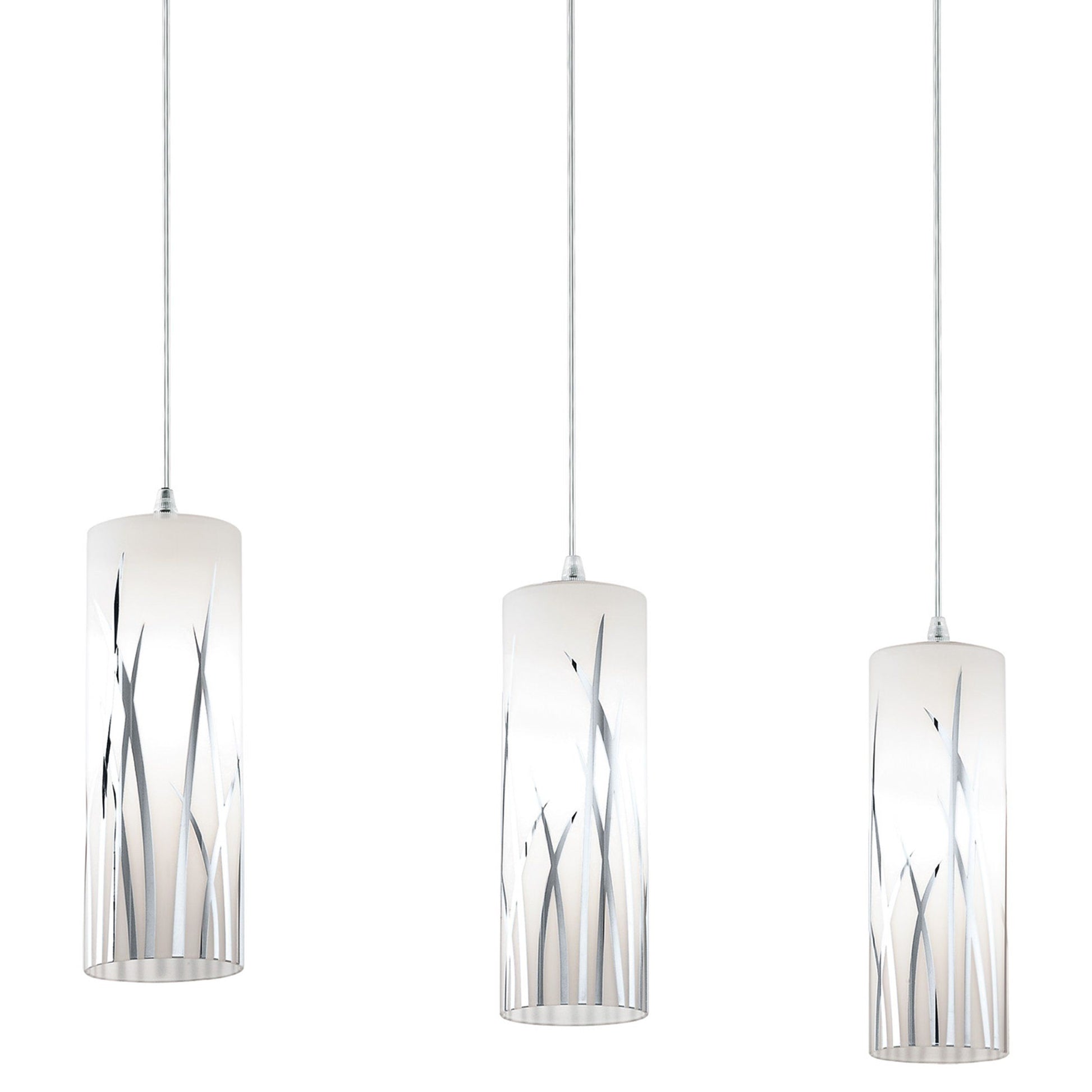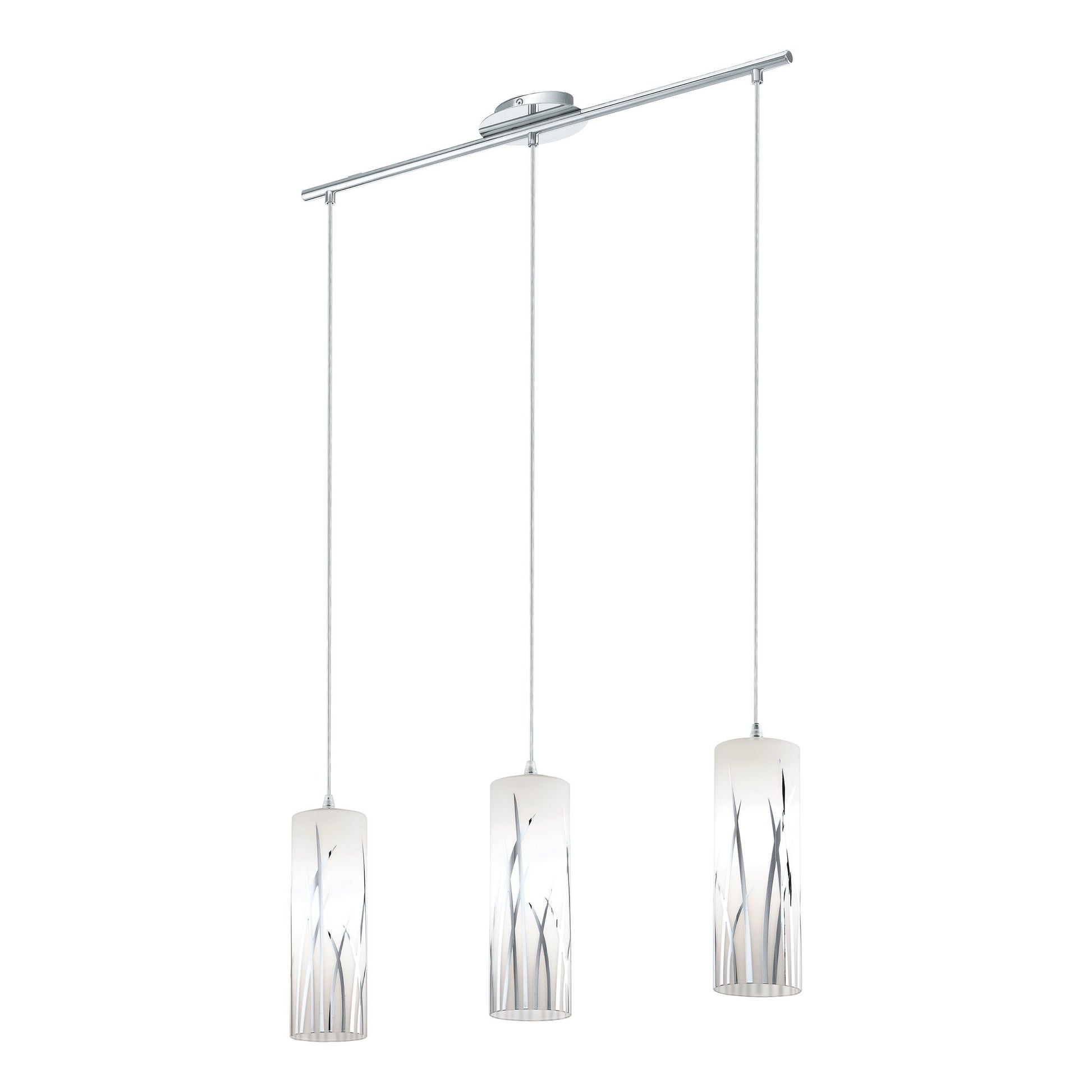 La lampada a sospensione RIVATO unisce eleganza e modernità grazie ai suoi tre cilindri in vetro bianco, impreziositi da decorazioni cromate che richiamano fili d’erba. Sospesa da un cavo cromato, si integra perfettamente in interni moderni, creando un’atmosfera raffinata nel soggiorno o nella sala da pranzo. Compatibile con qualsiasi lampadina E27, la lampada offre versatilità senza sacrificare stile. Le lampadine non sono incluse nella confezione.