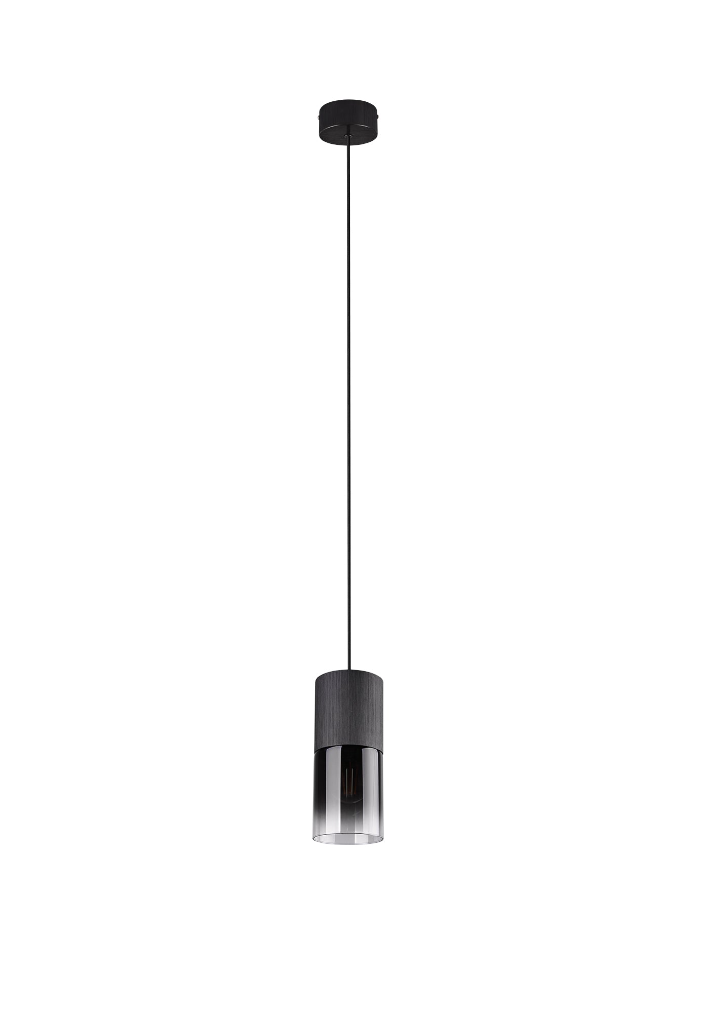 ROBIN SOSPENSIONE CILINDRO METALLO NERO E VETRO FUME' E TRASPARENTE D. 10CM