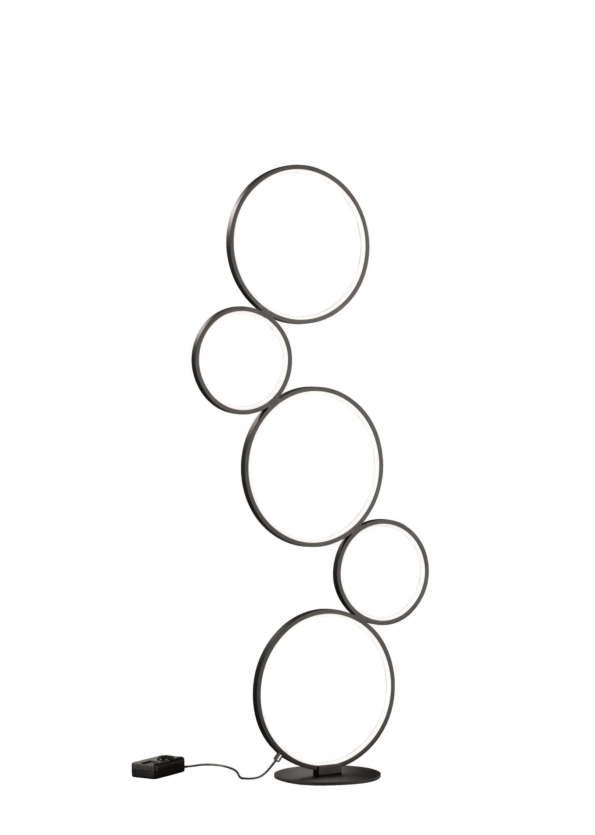 RONDO PIANTANA LED 5 CERCHI METALLO NERO OPACO CON VARIALUCE H. 115CM