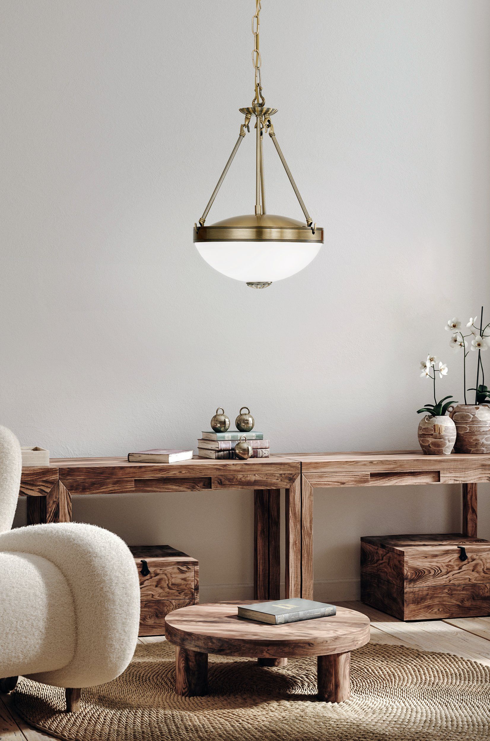 La lampada a sospensione SAVOY combina un elegante corpo in metallo brunito con un paralume rotondo in vetro satinato bianco, creando un design classico e raffinato. La catena a maglie e i dettagli decorativi bruniti aggiungono un tocco distintivo, rendendola perfetta per ambienti come il soggiorno o la sala da pranzo. Compatibile con lampadine a E27 (non incluse), è ideale per creare un'illuminazione accogliente e senza tempo.