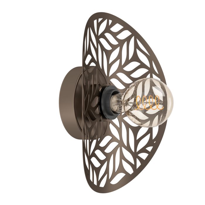 La lampada da parete SWABY è una soluzione d’illuminazione che unisce design artistico ed atmosfera calda, trasformando qualsiasi parete in un punto focale ricco di personalità. La sua struttura in metallo, modellata in una forma rotonda elegante e leggera, è impreziosita da un raffinato motivo a foglie intagliate rifinito in bronzo spazzolato, un dettaglio che dona profondità e carattere allo spazio. Il paralume aperto incornicia la lampadina a vista, creando un effetto luminoso suggestivo che proietta giochi di luce e ombre naturali, perfetti per aggiungere un’atmosfera accogliente alla stanza. Compatibile con lampadina E27, non inclusa, SWABY esprime al meglio la sua anima se abbinata a una lampadina decorativa a filamento, ideale per esaltarne l’estetica. Perfetta in soggiorno, camera da letto o corridoio, questa lampada valorizza ambienti dallo stile boho, vintage o dall’eleganza naturale, portando un tocco decorativo che non passa inosservato.