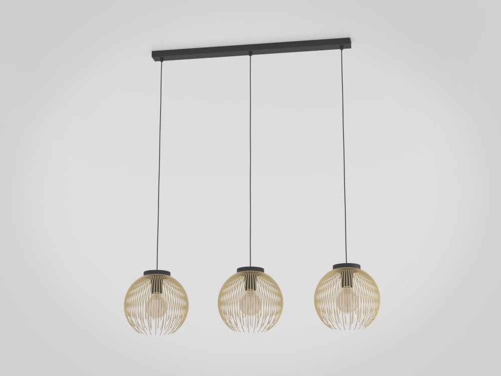 La lampada a sospensione VENEZUELA è un pezzo di design che unisce eleganza e funzionalità. Realizzata in acciaio con una raffinata finitura nero opaco e dettagli in oro, questa lampada presenta tre paralumi in filo metallico dorato che creano un suggestivo gioco di luci e ombre, conferendo un tocco di stile industrial chic a qualsiasi ambiente. Con un'altezza regolabile fino a 110 cm, si adatta perfettamente a diverse esigenze di spazio. La lampada supporta tre lampadine con attacco E27, garantendo una potenza massima di 40W ciascuna. Per un'illuminazione più efficiente e a risparmio energetico, si raccomanda l'uso di lampadine LED. La combinazione di nero opaco e oro aggiunge un tocco di eleganza senza tempo, rendendo VENEZUELA un'ottima scelta per chi cerca un'illuminazione sofisticata e funzionale.
